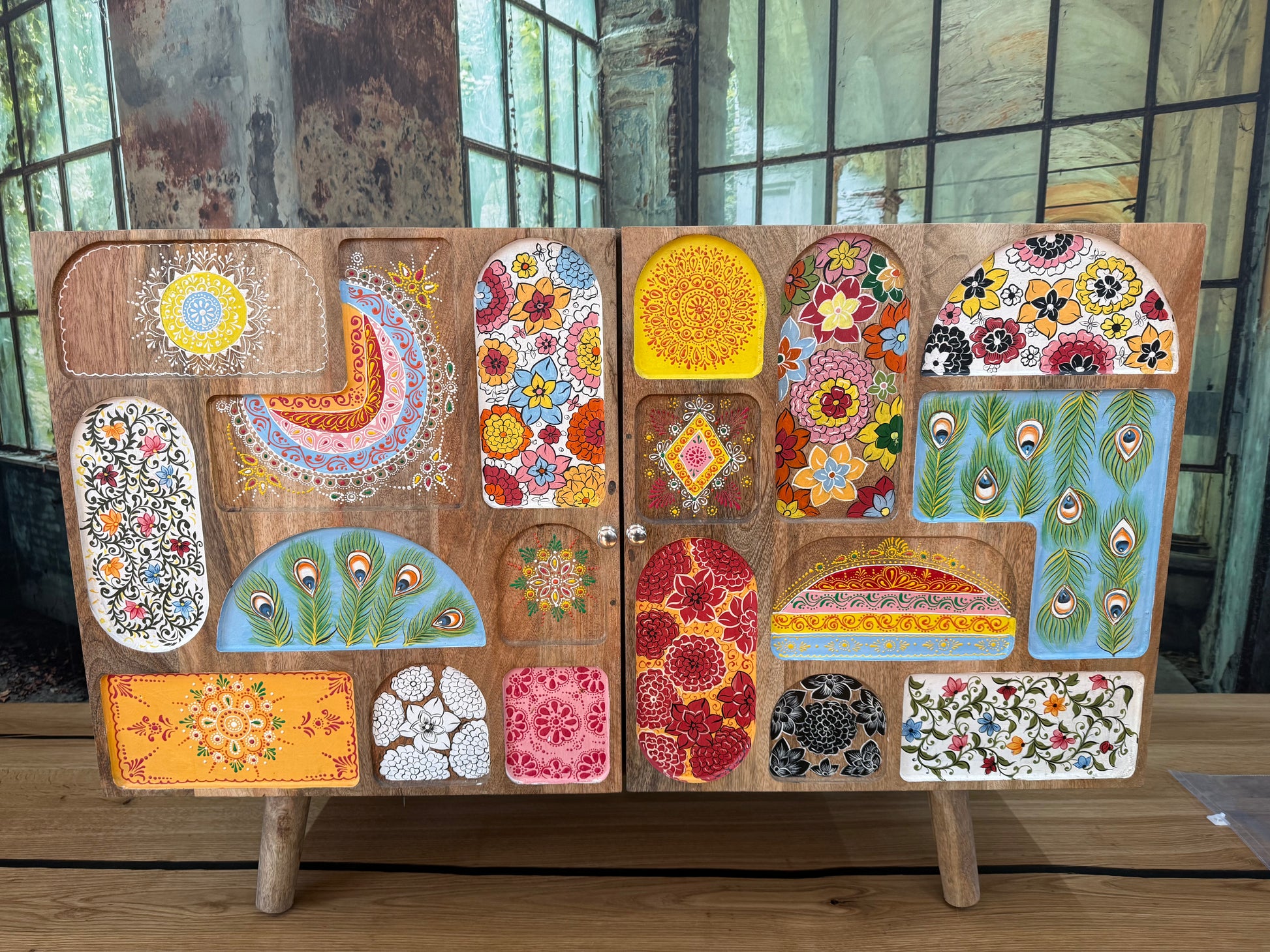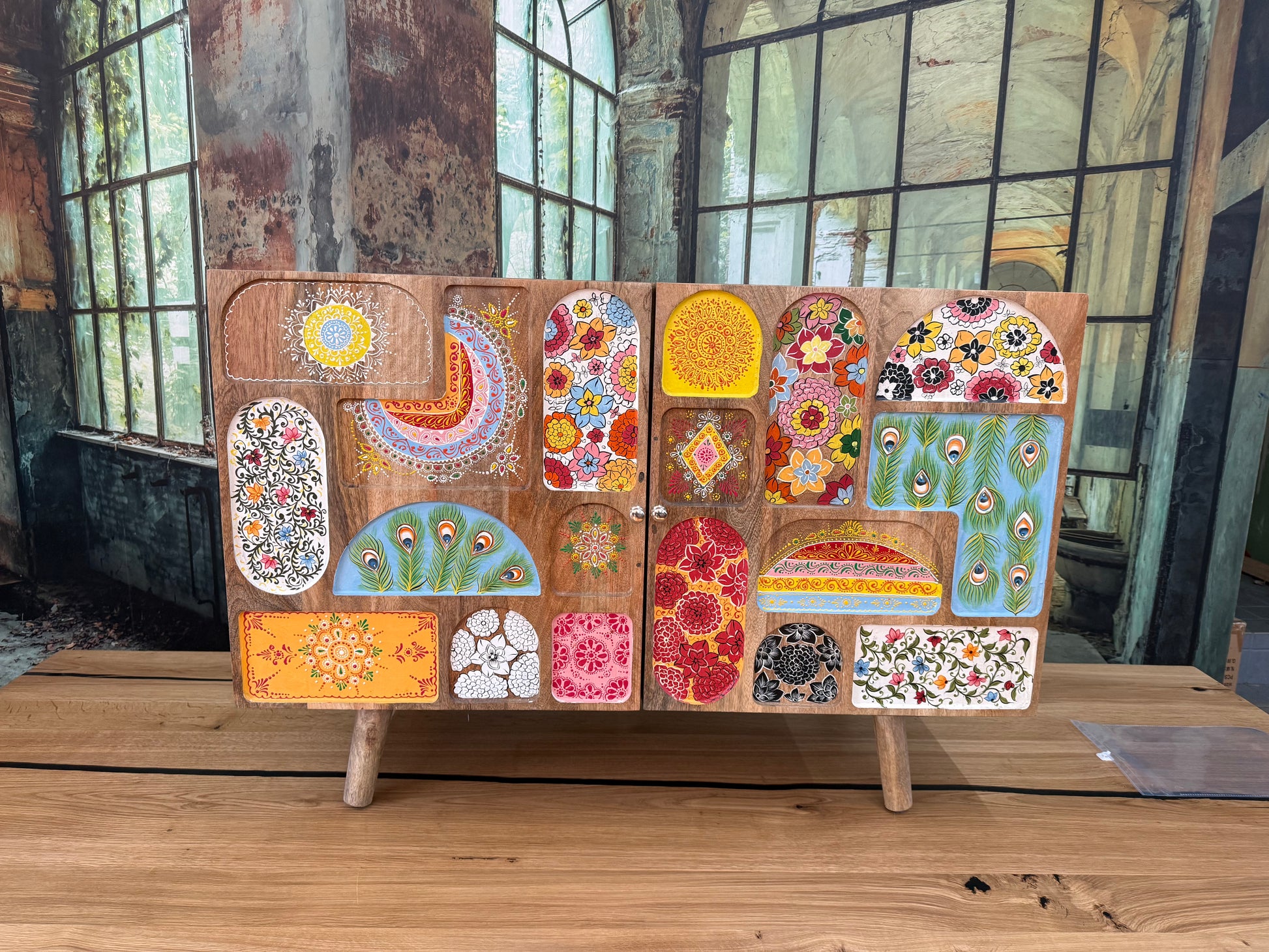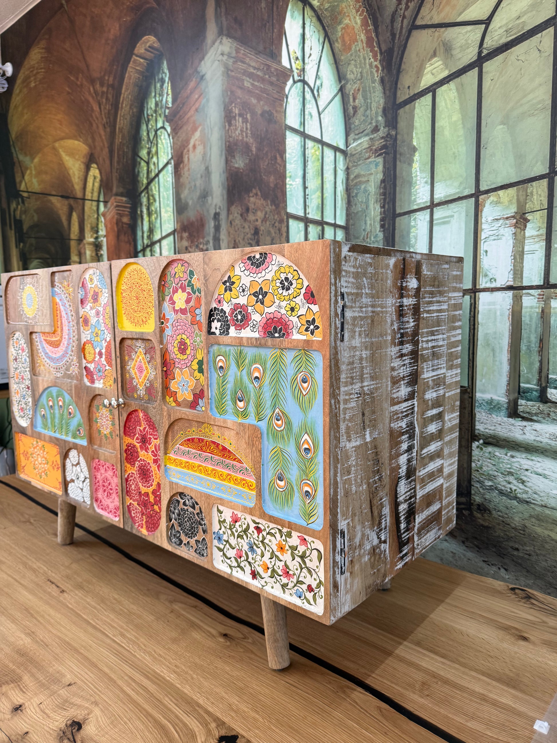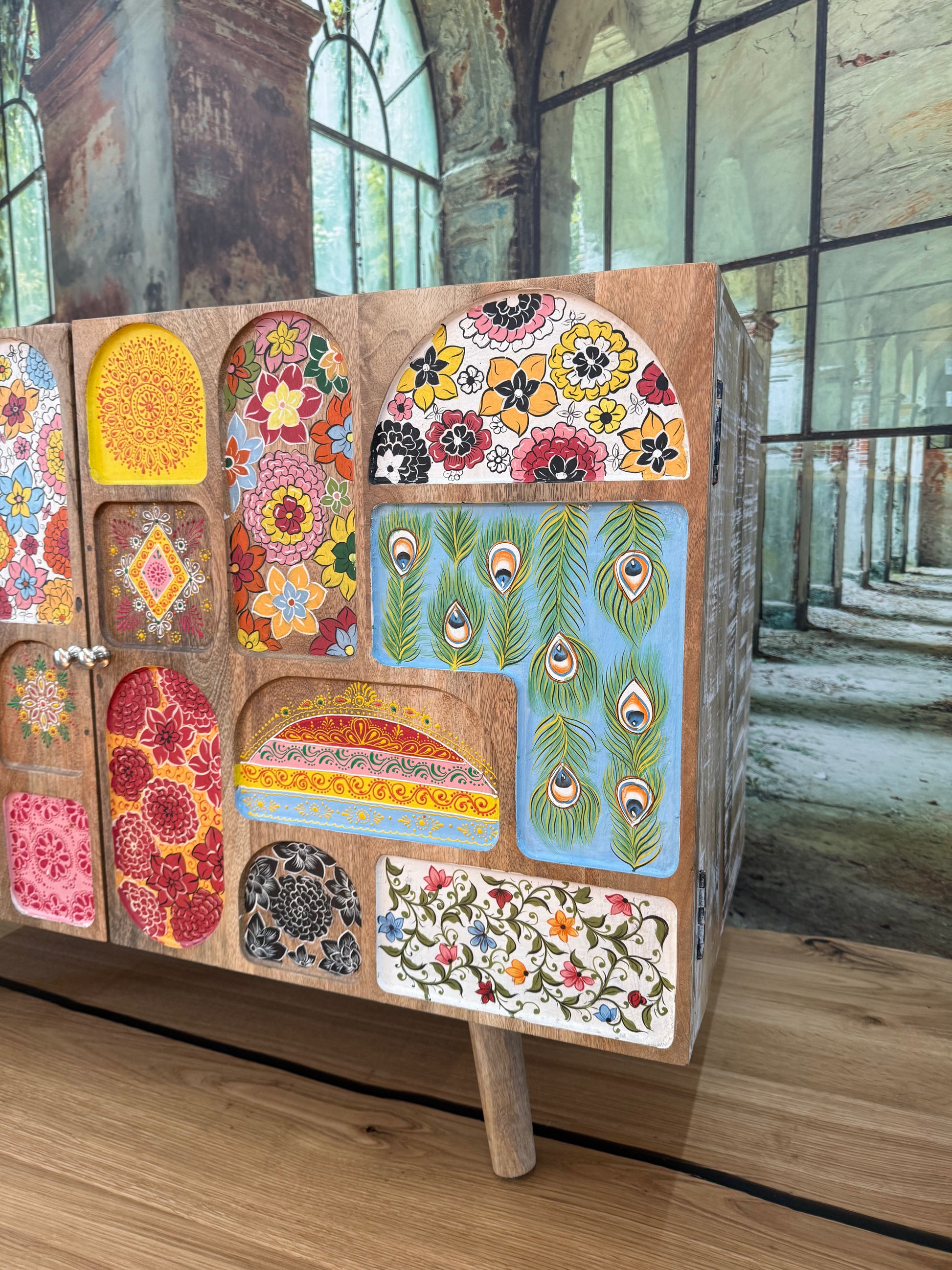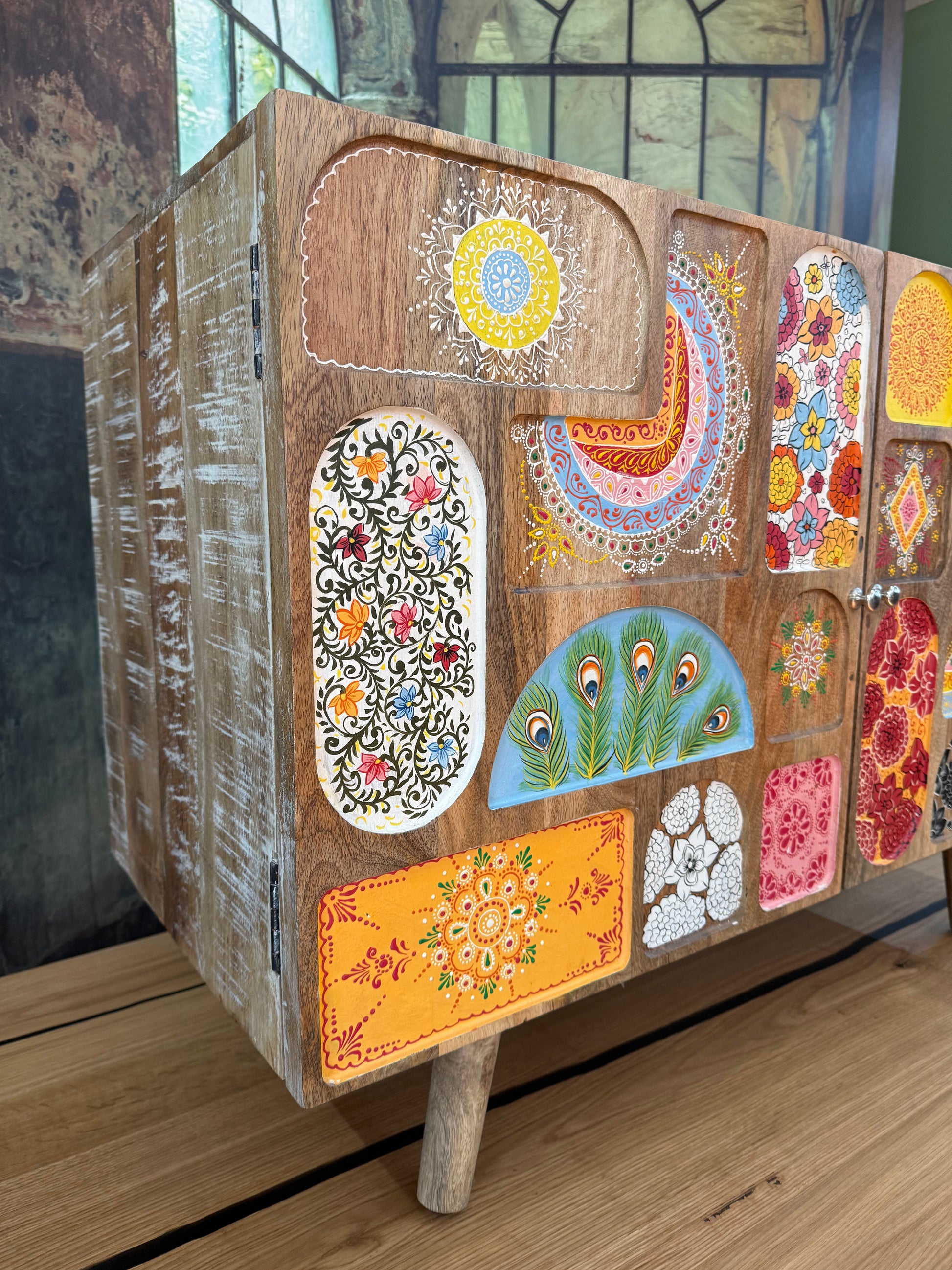 Kommode Schrank + Bemalung + MASSIVHOLZ MANGO + EINZELSTÜCK