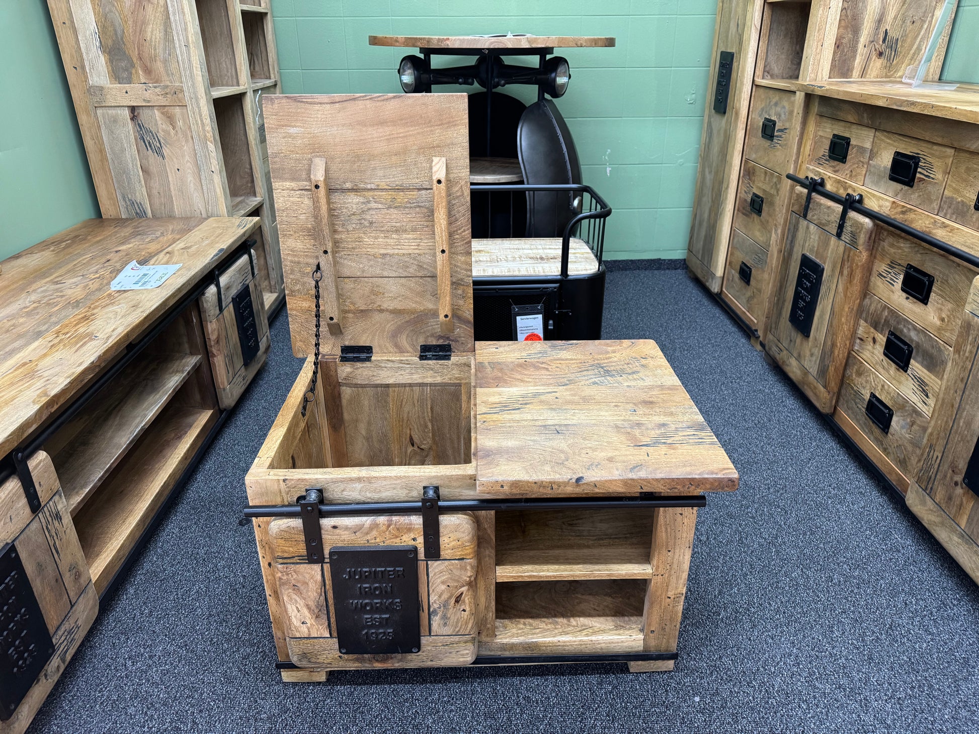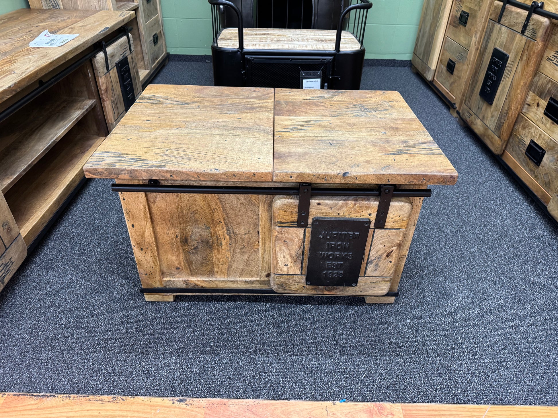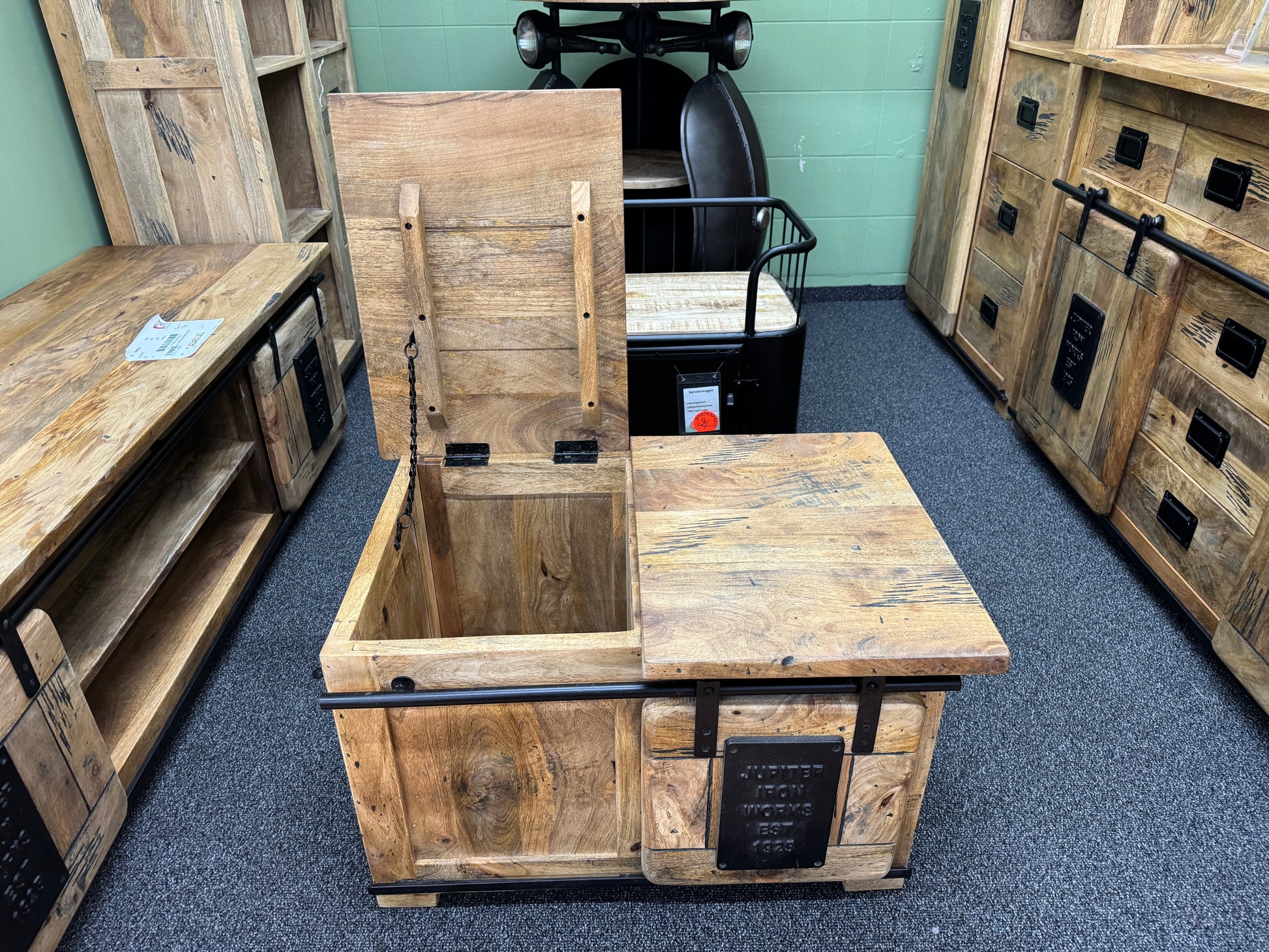 Truhe Couchtisch +Mango Massiv +Industrial Look +verschiedene Varianten
